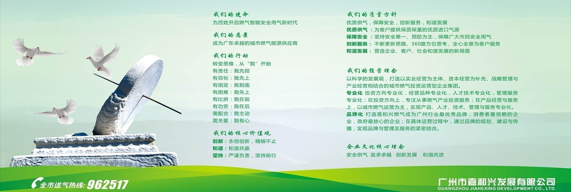 公司在廣州經(jīng)營多年的液化氣的過程中,積累了大量的行業(yè)資源,積極配合政府管理及倡導(dǎo)行業(yè)溝通協(xié)調(diào)?,F(xiàn)在“嘉和興”已成為廣州液化氣市場的著名品牌。